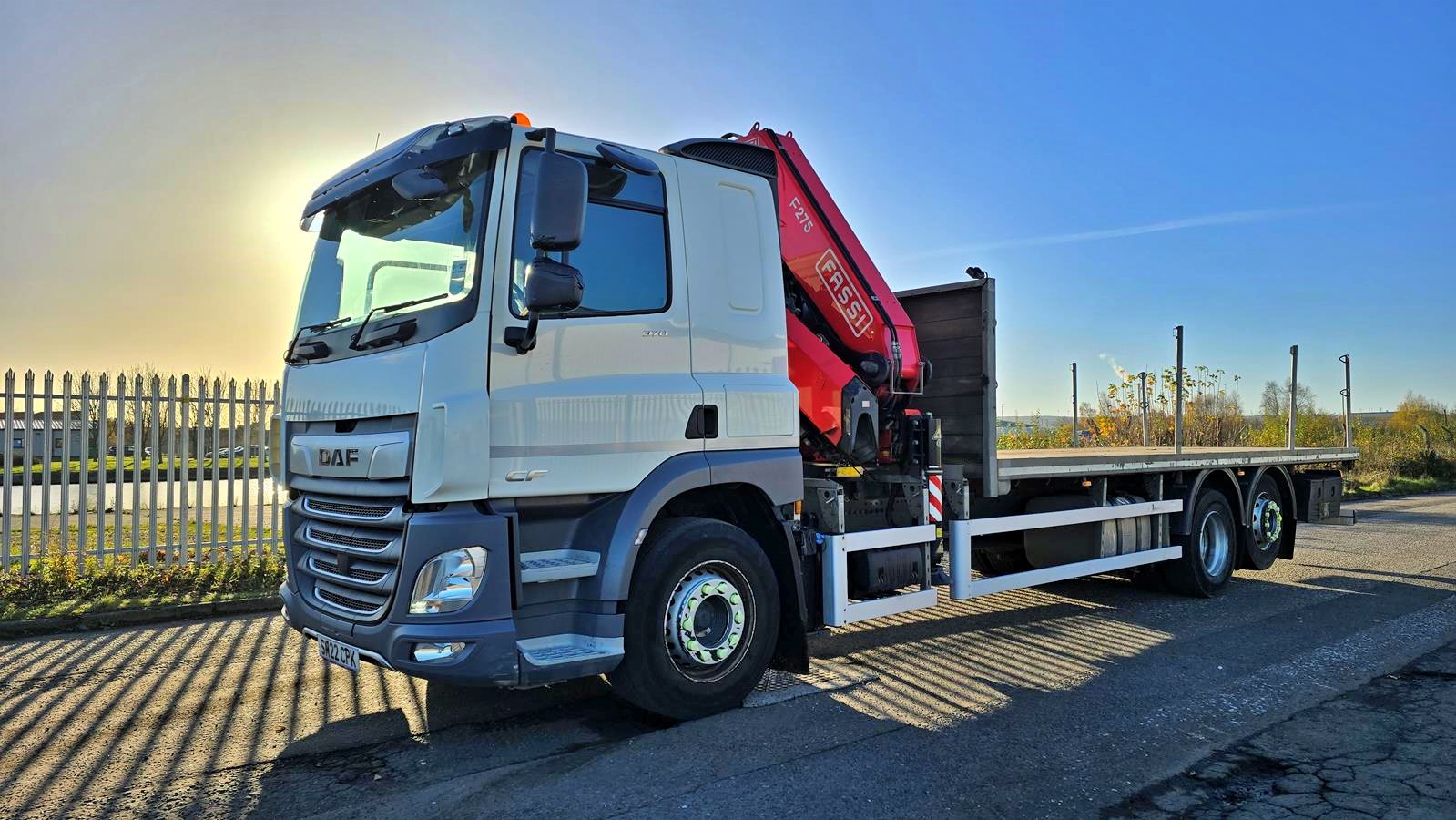 2022 DAF CF370 6x2 FASSI F275A.2.23 Front Mount Hook Crane Flatbed