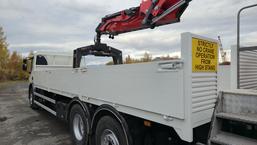 Featured here is an ex-Beatsons Builders Supply vehicle from one of Scotland's leading independent merchants. This Volvo truck will undergo a comprehensive inspection and preparation process in our workshop, including a mechanical check, a fresh MOT, and a crane test.
